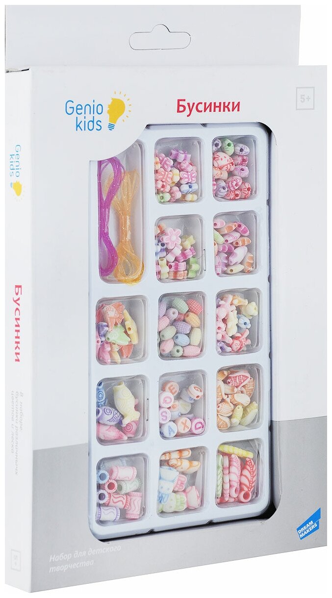 Набор для детского творчества Genio Kids "Бусинки" - это три разных настроения, три новых обрпаза, три сказочные истории из мира творчества. Состоит из множества различных бусинок, с помощью которых ваша маленькая модница сможет почувствовать себя модным дизайнером и самой создать бусы на свой вкус. Набор дает возможность создать необычные украшения, каких больше нет ни у кого во всем мире, и затем с гордостью носить свои любимые бусы! Набор для творчества развивает мелкую моторику, устойчивость внимания, аккуратность, усидчивость и эстетический вкус. Работа с мелкими деталями развивает координацию и слаженность движений, а также терпение и упорство. Занятия с таким наборам поможет развитию творческих способностей у ребенка, научат мыслить образно, творчески. А время, проведенное вместе, еще больше сблизит вас со. Рекомендуем!