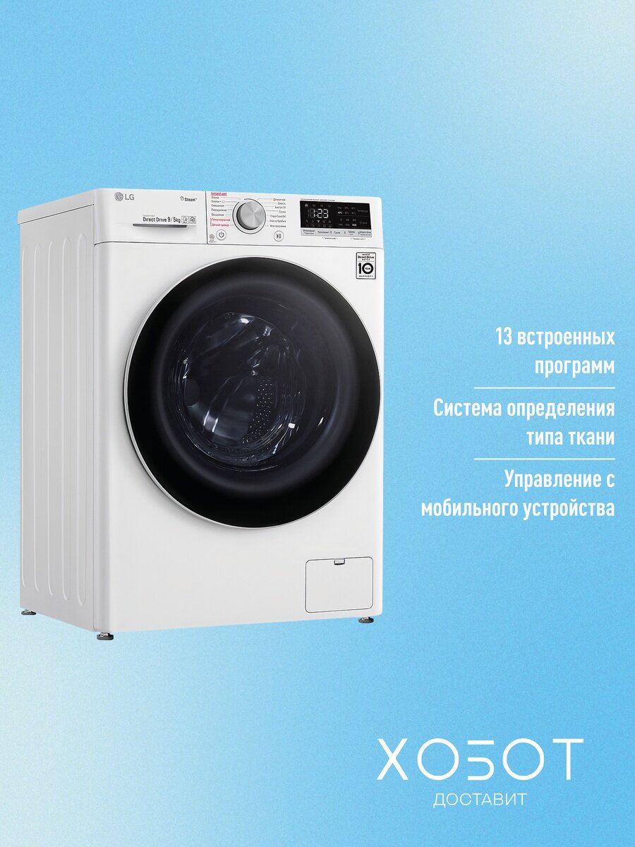 | Перечень программ | Интеллектуальная система AI DD. Функция пара Steam. Технология SmartThinQ. Автобалансировка. Детектор загрузки. Автоперезапуск. Инверторный мотор с прямым приводом. 6 движений заботы. Мобильная диагностика Smart Diagnosis. Wi-Fi. Возможность управления через приложение SmartThinQ |