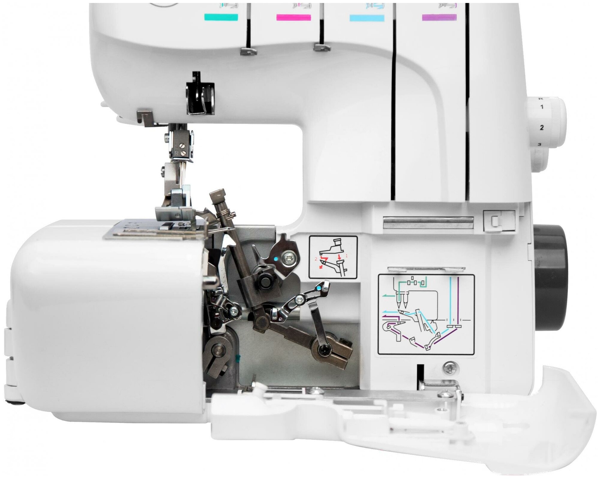 | Прочие особенности и свойства | 12 видов швов: , 4-ниточный оверлочный, 3-ниточный суперэластичный, 3-ниточный оверлочный широкий, 3-ниточный оверлочный узкий, 3-ниточный роликовый, 3-ниточный подрубочный, 2-ниточный оверлочный широкий, 2-ниточный оверлочный узкий, 2-ниточный роликовый, Плоский шов 2-ниточный (Flatlock), Плоский шов 3-ниточный (Flatlock) широкий, Плоский шов 3-ниточный (Flatlock) узкий, Регулировка давления лапки на ткань, Ширина обрезки до 7 мм, Длина стежка 5 мм, Коэффициент дифференциальной подачи - 0,7-2,0, Регулировка ширины обрезки ткани, Встроенный нитеобрезатель, Отключение ножа, Схема заправки, Максимальная скорость шитья - 1300 ст./мин. |
