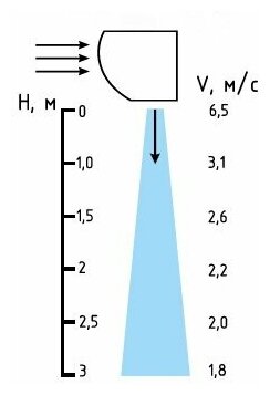 | Скорость воздуха на выходе из сопла, м/с | 6.5 |