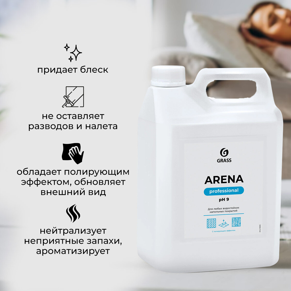 **Средство для мытья полов Arena** предназначено для уборки паркета, ламината, плитки. Представляет собой концентрат, который разводят в воде согласно инструкции, размещенной на этикетке. Не требует смывания и последующего вытирания сухой тряпкой.