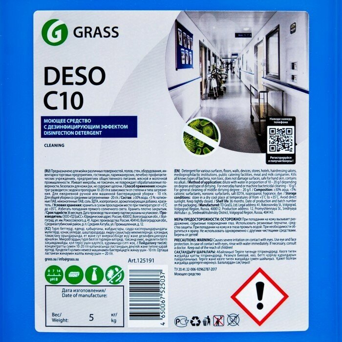 Средство дезинфицирующее 5 кг GRASS нейтральное низкопенное концентрат 125191 DESO C10