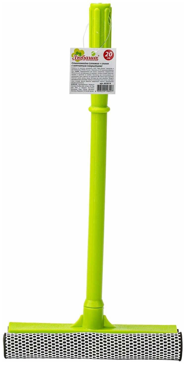 | Описание | Легкая и компактная стекломойка ТМ ЛЮБАША может выполнять две функции:мытье стеклянной поверхности с помощью спонжа и сгон воды резиновым лезвием |
