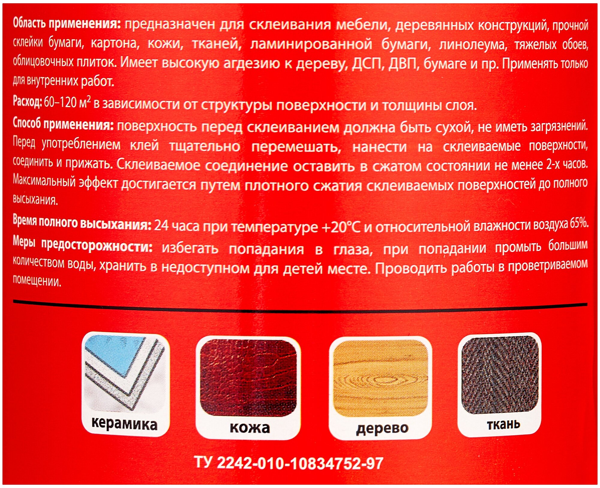 | Склеиваемые материалы | бумага, дерево, картон, кожа, стекло, текстиль, фарфор, фотобумага, линолеум, керамика |
