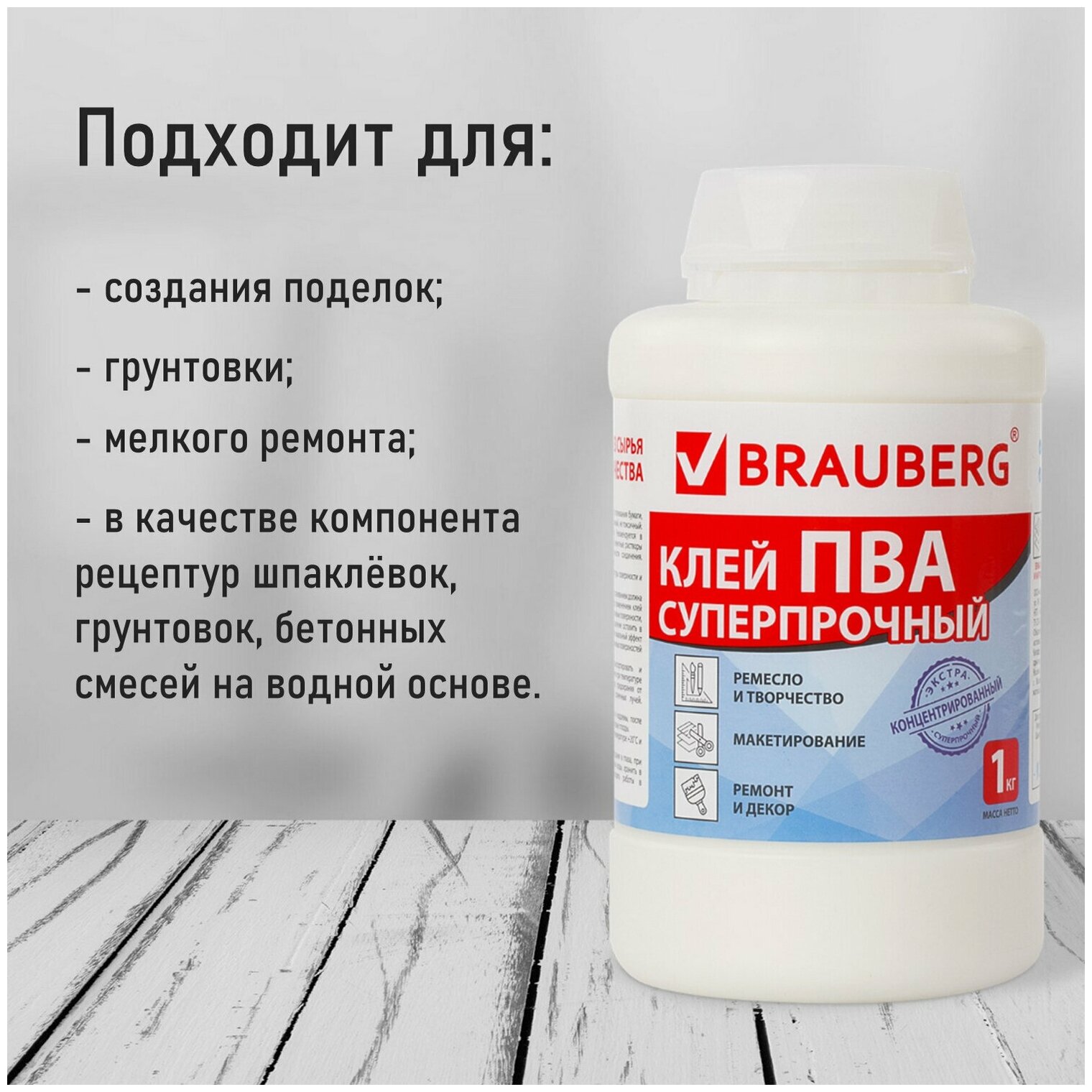 BRAUBERG Клей ПВА суперпрочный концентрированный Экстра 600984 1 кг 1 шт. 1000 г 1000 мл