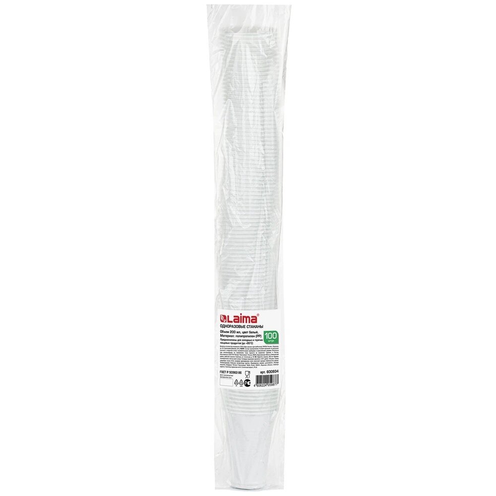 Лайма Стаканы одноразовые пластиковые Бюджет 200 мл 100 шт. белый 600934