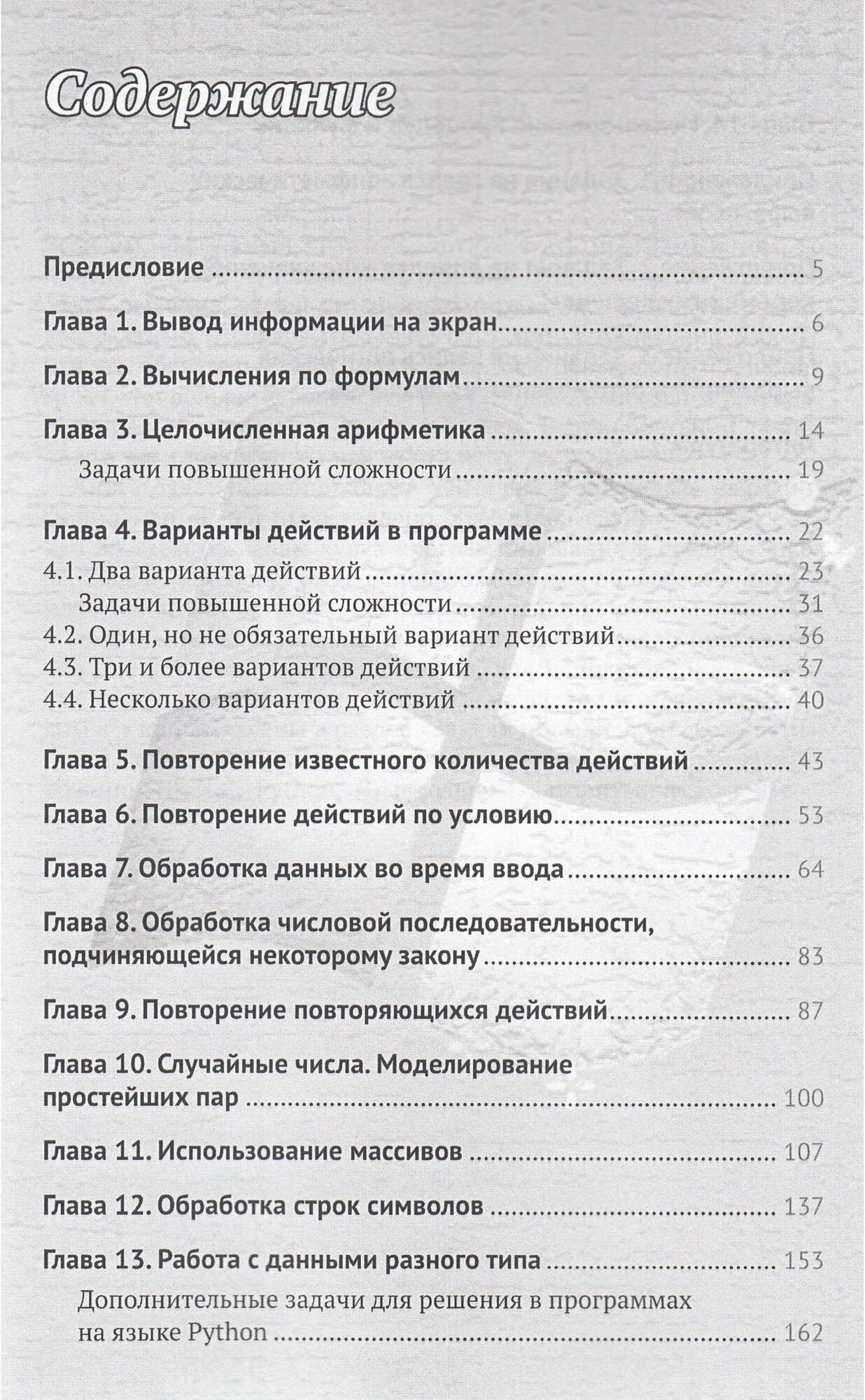 В книге приведено более 1400 задач по программированию. Задачи имеют разный уровень сложности и охватывают большой круг тем. Они не привязаны к конкретному языку программирования и могут быть решены в программе на любом языке (Pascal, Python, С, школьном алгоритмическом языке и т. д.).