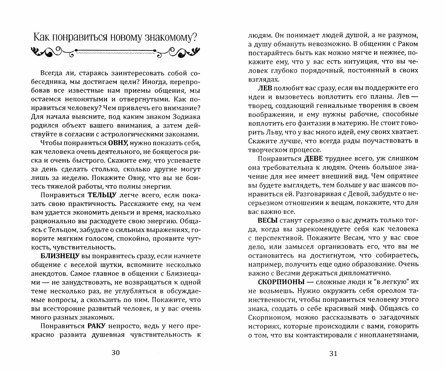 В этой книге речь идет о способах достижения женского счастья, об астрологических приемах привлечения внимания поклонников, о том, где и когда искать свою любовь, зачем приходит любовь и когда она может прийти к вам, как снять "венец безбрачия", о методах, позволяющих узнать свое будущее и смоделировать свою судьбу. В книге дан гороскоп сексуальной совместимости, метод определения того, насколько два человека подходят друг другу, рассказано об опасностях, связанных с изменением фамилии при замужестве.