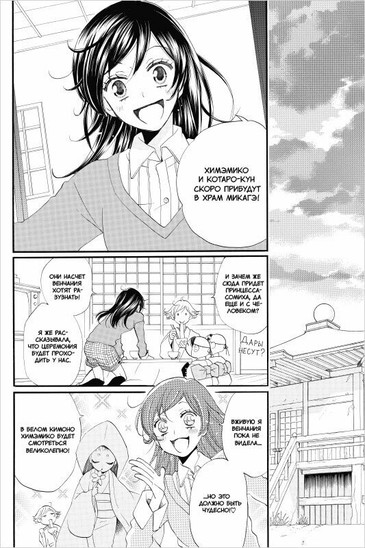 Уж сколько раз твердили миру - отношения между духом и человеком грозят обернуться множеством бед! И все же Болотная Химэмико, влюбившаяся в смертного по имени Котаро, верит, что им повезет. Нанами всячески поддерживает подругу и хочет помочь влюбленным, обвенчав их в храме Микагэ. Но, конечно, без неприятностей не обходится: к Химэмико сватается другой дух, Драконий Карп Нисики, который не терпит отказов...