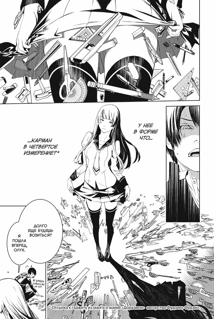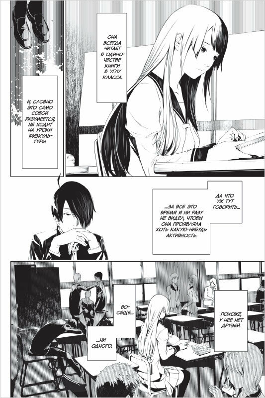 В основном манга базировалась на аниме, и получилось очень хорошо. Авторы решили изменить и убрать некоторые моменты истории, которые не очень важны, но от этого работа не стала хуже. Интересный сюжет с мистикой, психологией и юмором. Качество иллюстраций меня сильно порадовало. Я думал о том, как можно такую необычную историю с большим количеством диалогов уместить в мангу, но после прочтения сделал вывод, что создателям это удалось.