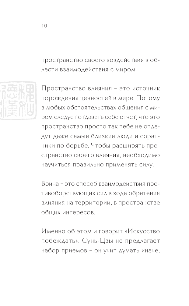 Не сразу поняла что это знаменитое «искусство войны». Переведено название по-другому. Книга восхитительно свёрстана. Иллюстрации теракотовых войнов (черно-белые) в начале глав. Шрифт в отличие от других книг этой серии крупный. Прочла за день и буду перечитывать. После основного текста - комментарий БВ и других исследователей, разбор глав, тоже очень понравилось. Книга - жемчужина.
