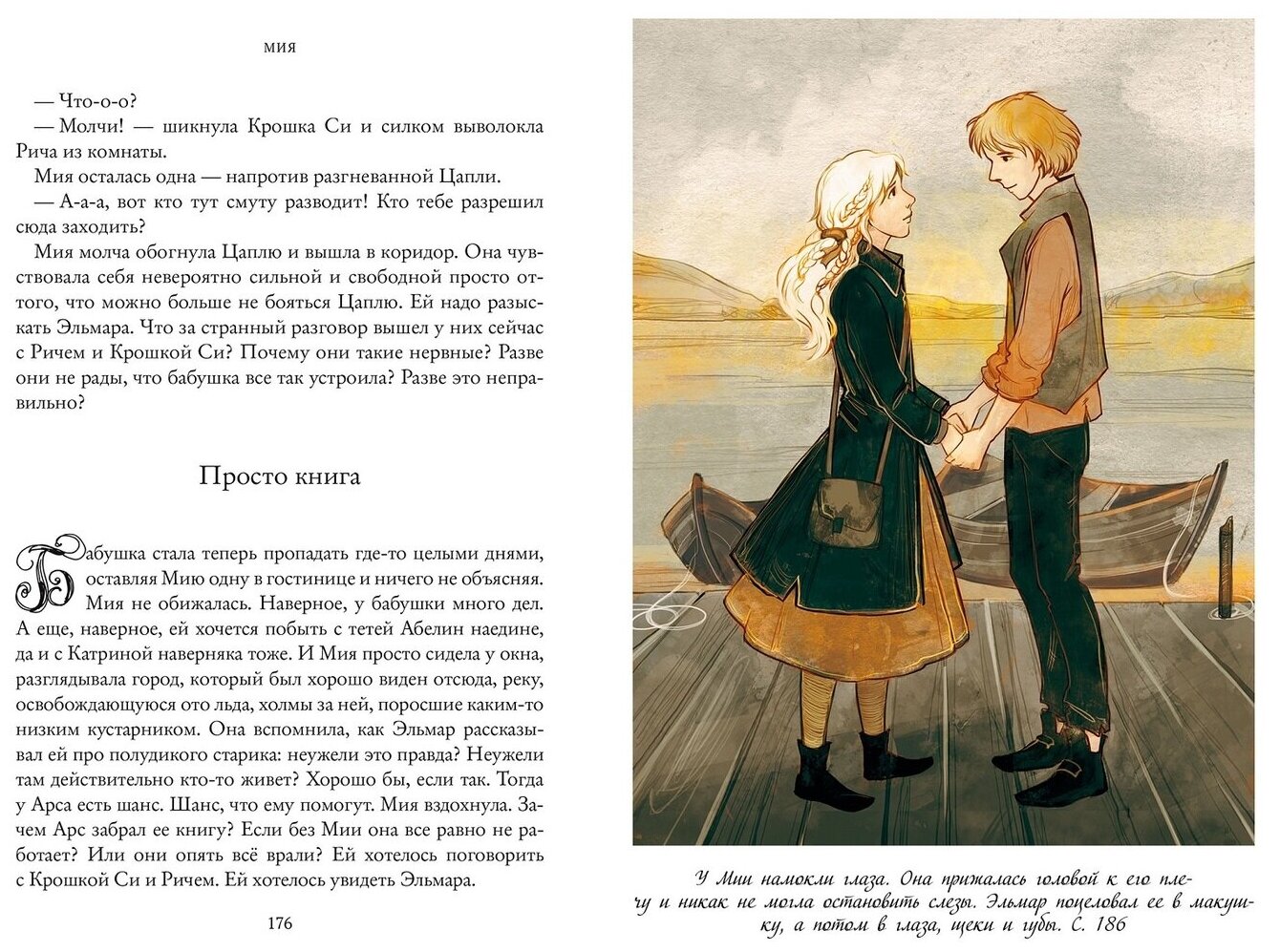 Мы большие фанаты серии «Тайная дверь»: уже прочитали «Тайны Чароводья», «Друг или враг», «Наследники Треглава», «Туманный Дайвер», все три части цикла «Джинкс». Эту книгу купили на выставке еще и потому, потому что очень любим Михееву. Кто ее аудитория? Девочки и мальчики 12 лет и старше. Мия, главная героиня, живет в большой семье, и жизнь ее наполнена самыми прозаическими моментами, но однажды она находит книгу и отправляется с ней в путешествие. Чем больше путешествует Мия, тем больше на страницах появляется слов, тем больше она может прочитать. Это история в истории, одна из которых заканчивается, а вторая, полагаю, будет в следующей книге. Как и в цикле «Чароводье», в книге есть иллюстрации-вставки, всего 14, а также карта. Ждем теперь следующую часть!