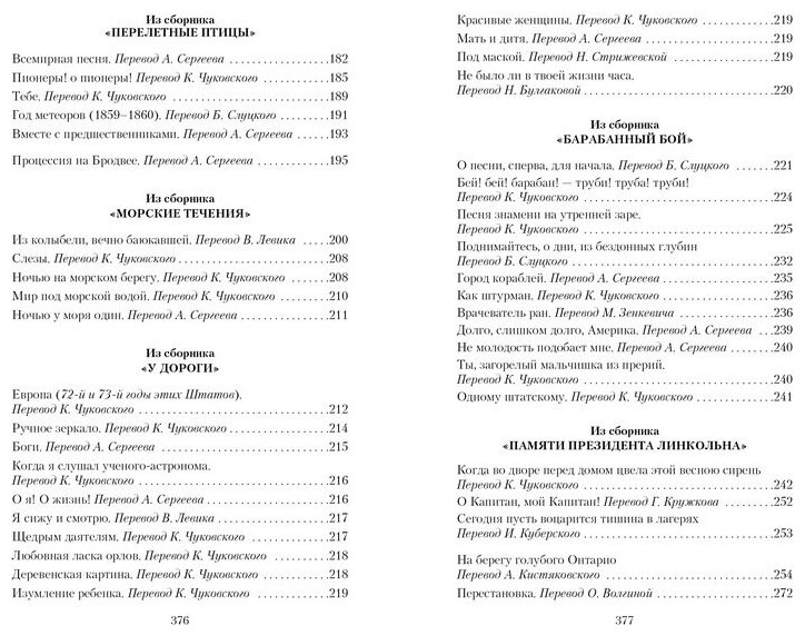 Поэзия Уолта Уитмена очень своеобразна. Он одним из первых освоил свободный стих, и, мне кажется, эта необязательность ритма и рифмы была воспринята и более широко использована уже битниками - возникают ассоциации с не переведёнными на русский язык поэтическими сборниками Джека Керуака. Читатель не найдёт здесь стихов в классическом, привычном понимании этого слова. Зато какая чудесная открывается возможность расширить свои представления о поэзии. Очень сочный слог у Уитмена.