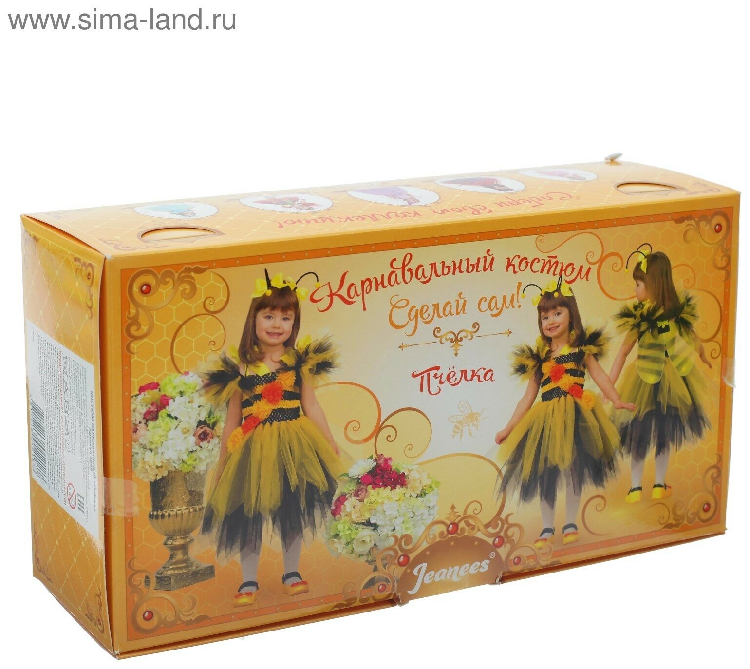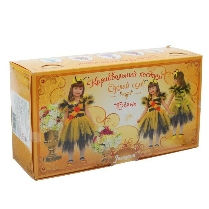 Комплектация Бобина лент, 3 шт: 2 чёрные, 1 жёлтая. Длина одной ленты — 22 м. Материал лент — фатин.Вязаный корсет на резинке: высота — 18 см, обхват по груди — 50 см.Пластмассовый крючок для вязания № 10.Жёлтая атласная лента: ширина — 4 см, длина — 3 м.Декоративный цветок, 5 шт.Жёлтый помпон, 2 шт.Чёрная декоративная проволока, 2 шт.Металлическая заколка, 2 шт.Складные крылышки.Инструкция по сборке модели.