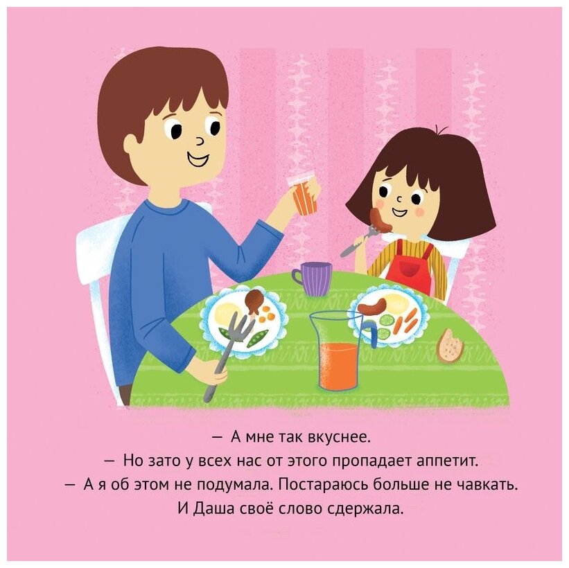 Даша и Саша - брат и сестра. Сегодня они узнают, что такое хорошие манеры, и выучат самые важные волшебные слова! В их компании маленькие читатели познакомятся с правилами этикета и получат ответы на вопросы Зачем быть вежливым? Почему нельзя чавкать за столом? Когда и кому нужно усткпать место?
