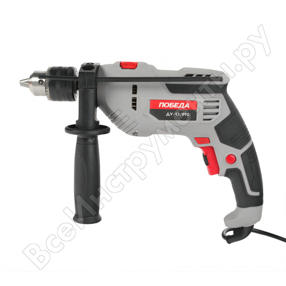 Дрель ударная Patriot Победа 120301990, с ударом, мощность 990 Вт, максимальный диаметр 13мм, глубиномер + дополнительная ручка
