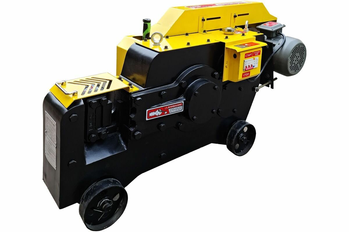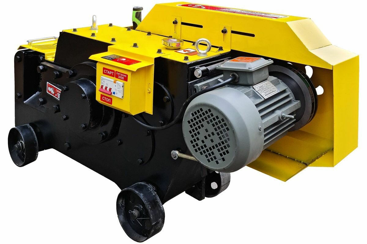 Станок для резки арматуры ТСС- предназначен для резки арматурного прута круглого и квадратного сечения и стальной полосы.Станок для резки арматуры ТСС- может использоваться на заводах по производству железобетонных изделий, в специализированных арматурных производствах, на строительных объектах, на технологическом производстве и в быту. Серия станков ТСС- имеющая большой ресурс и мощный двигатель, представляет наибольший интерес для предприятий перерабатывающих большие объемы арматурной стали.Техника оснащена мощными резаками, благодаря которым наш станок для резки арматуры имеет более высокую производительность. Лезвия резаков сделаны из прочных материалов с низкой износостойкостью, что увеличивает срок их жизни. Оборудование компактное и запросто перемещается по рабочей площадке, благодаря наличию колес. Частота хода ножа: 32 раза в минуту.