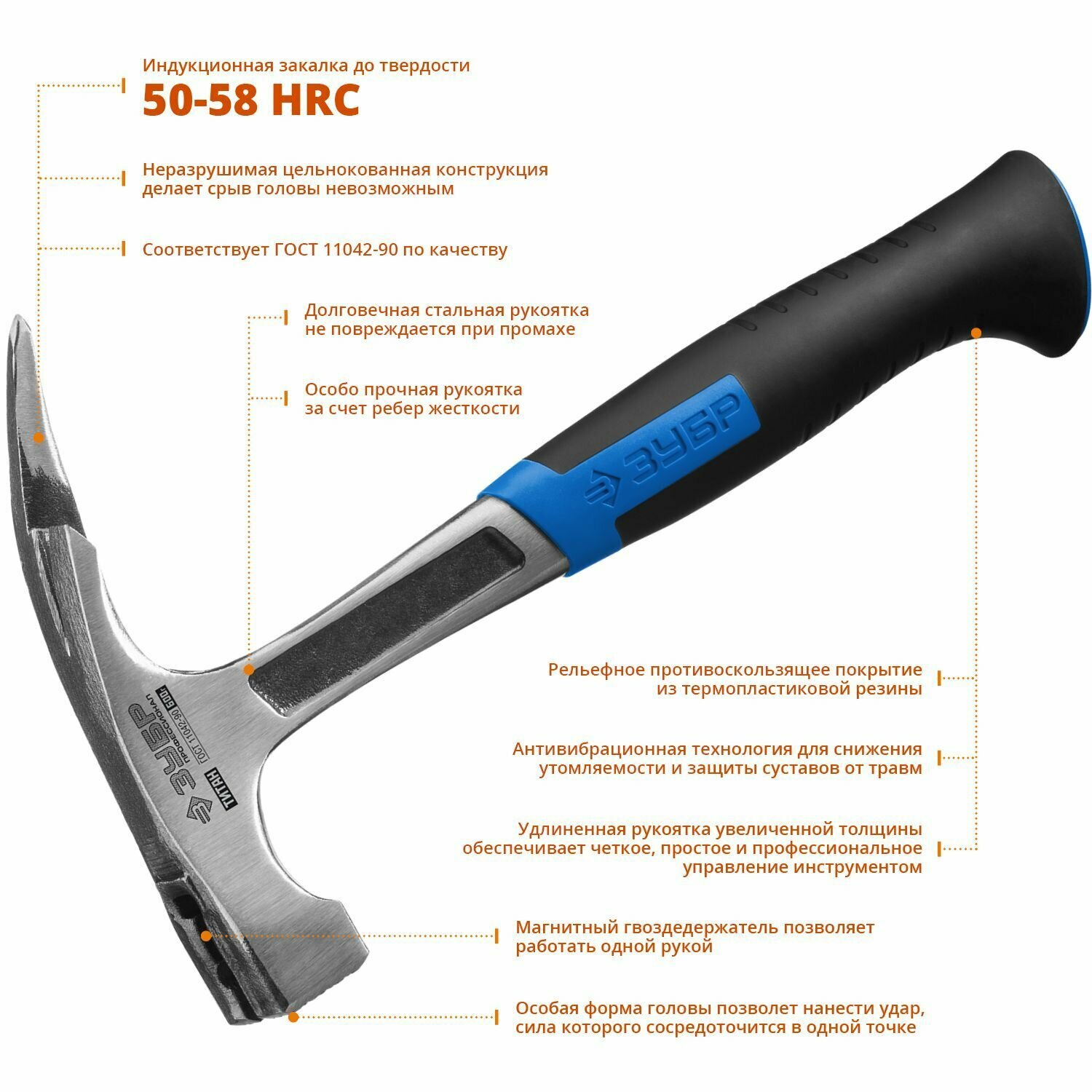 | Особенности | антискользящее покрытие рукоятки; кованый; магнитный держатель гвоздя |