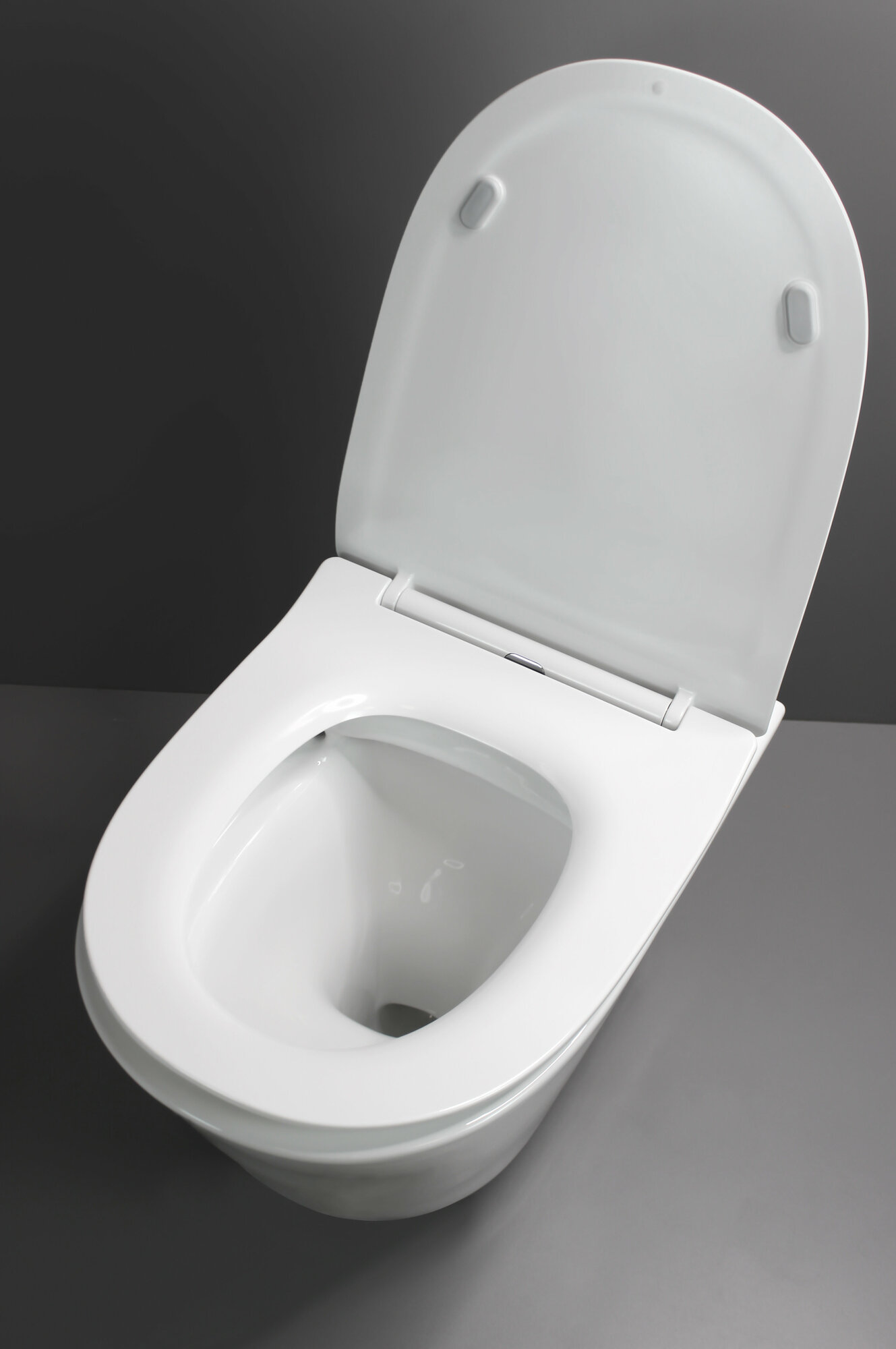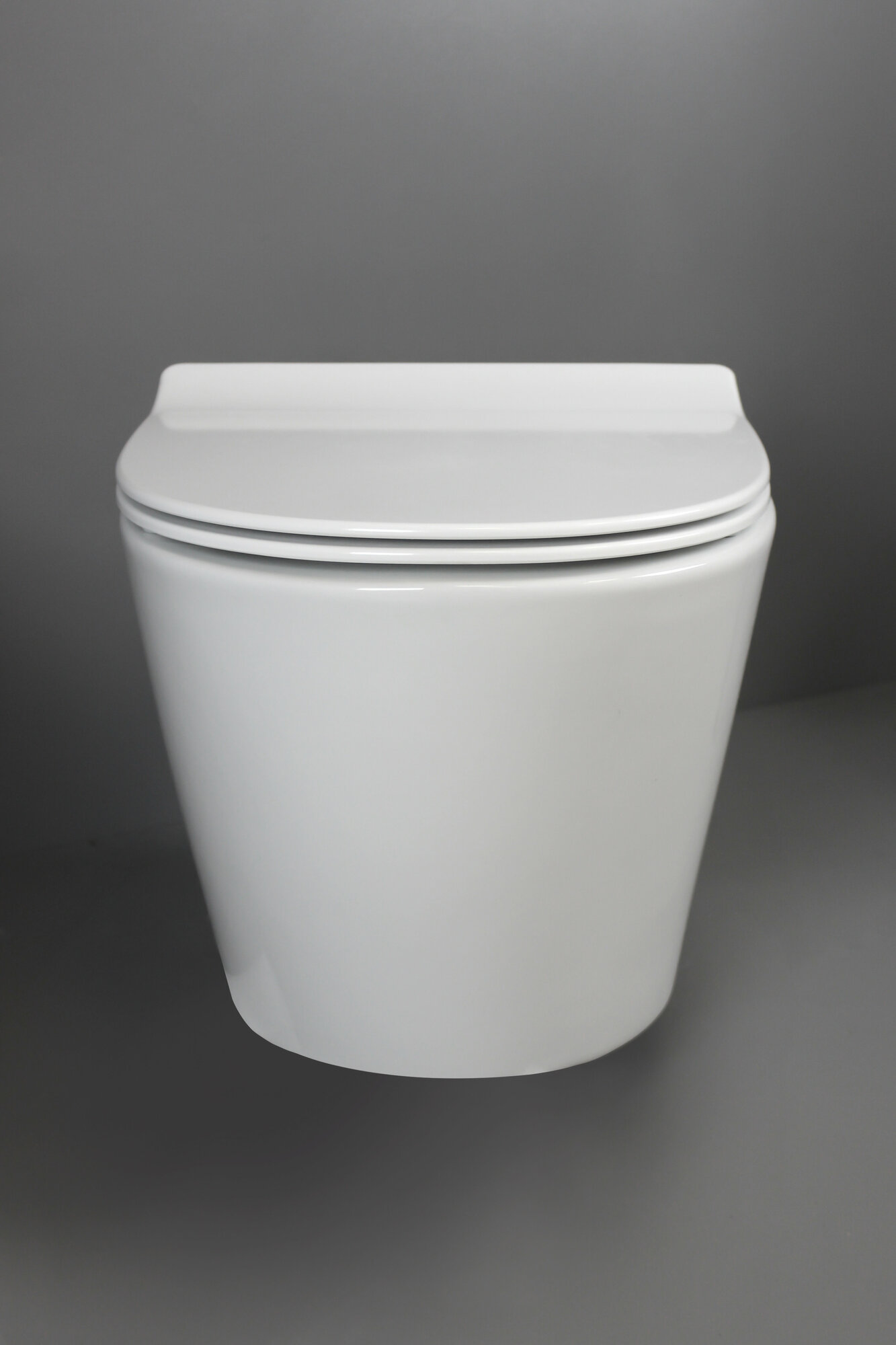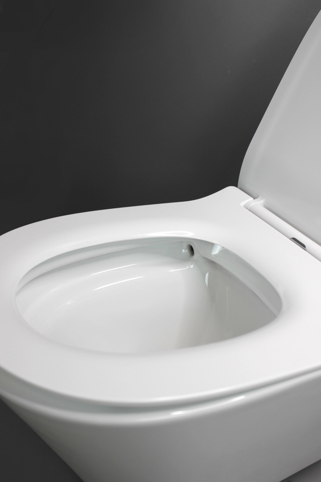 Подвесной керамический безободковый унитаз с горизонтальным сливом. Дюропластовое быстросъемное тонкое сидение с функцией soft-close. Крепление в комплекте. Сантехнический фарфор. Покрытие Double Glaze, придающее исключительную гладкость и обеспечивающее гигиеничность на долгое время. Универсальный дизайн как для классического, так и современного дизайна ванной комнаты.