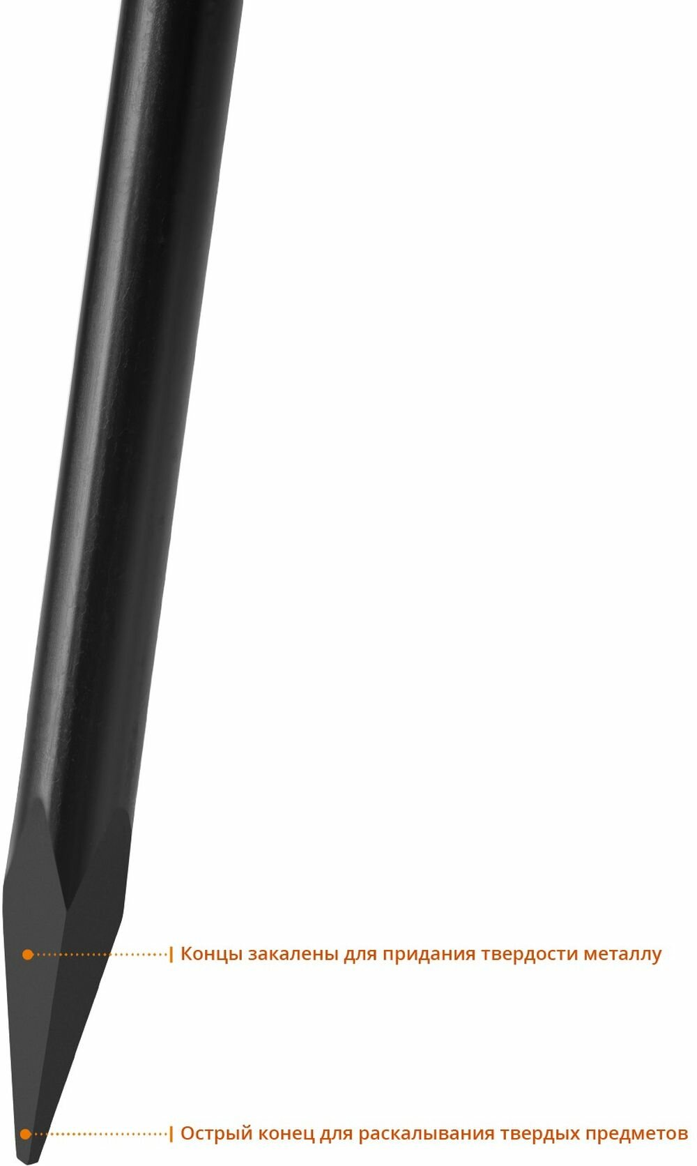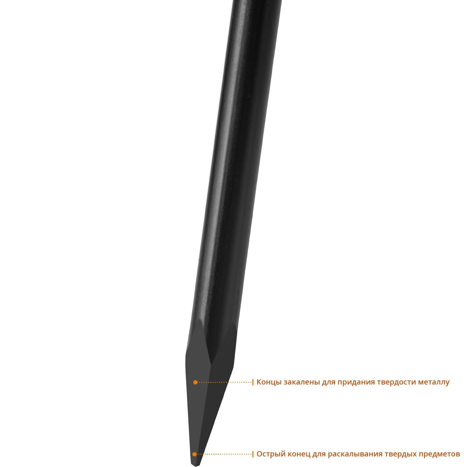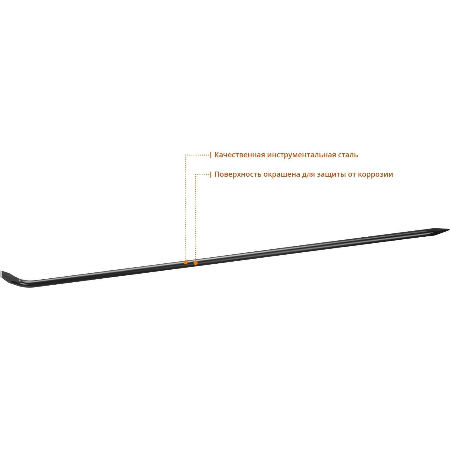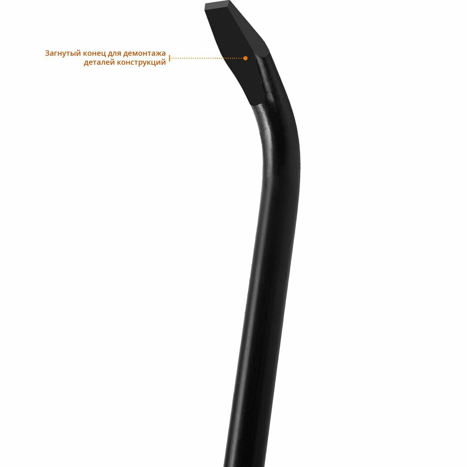 Монтажный лом оснащен парой рабочих зон для эффективного демонтажа и разборки. Инструмент удобен в использовании за счет оптимальной длины рычага. Диаметр инструмента достаточен для препятствования деформациям.