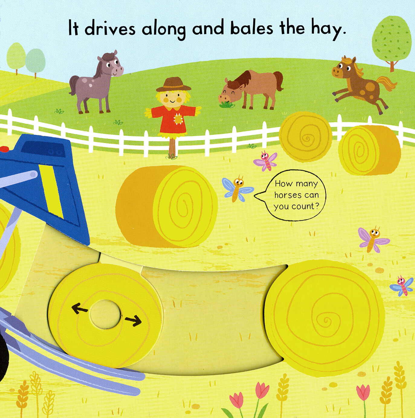 With lots to see in Busy Tractor, children can help out on the farm, pulling and turning the tabs. See the big tyres turn, drive the tractor through fields and harvest a crop of tasty vegetables!