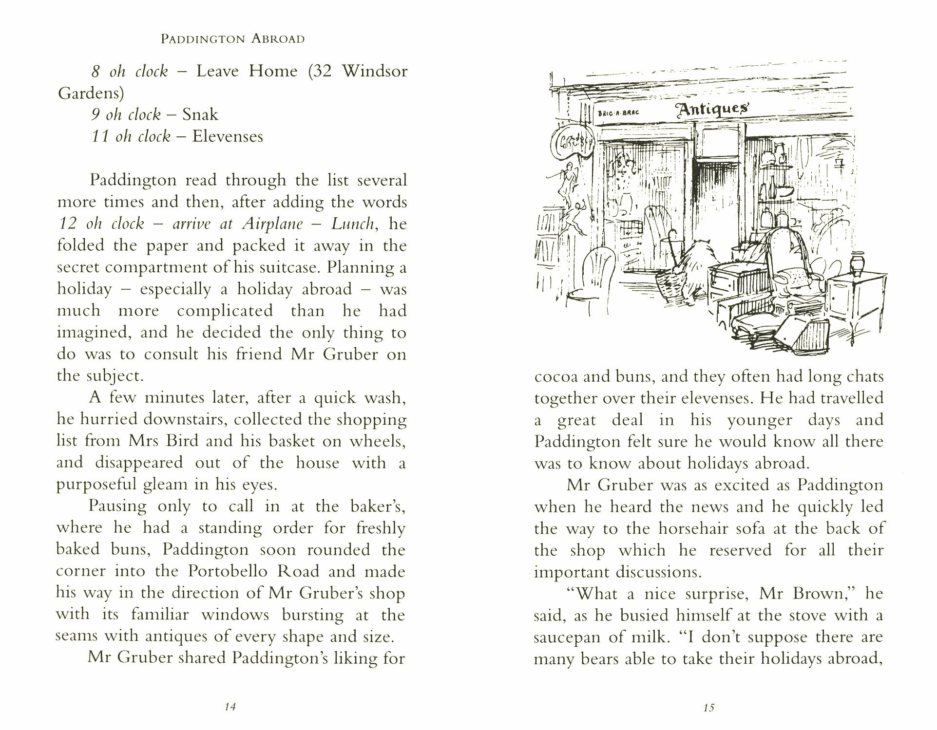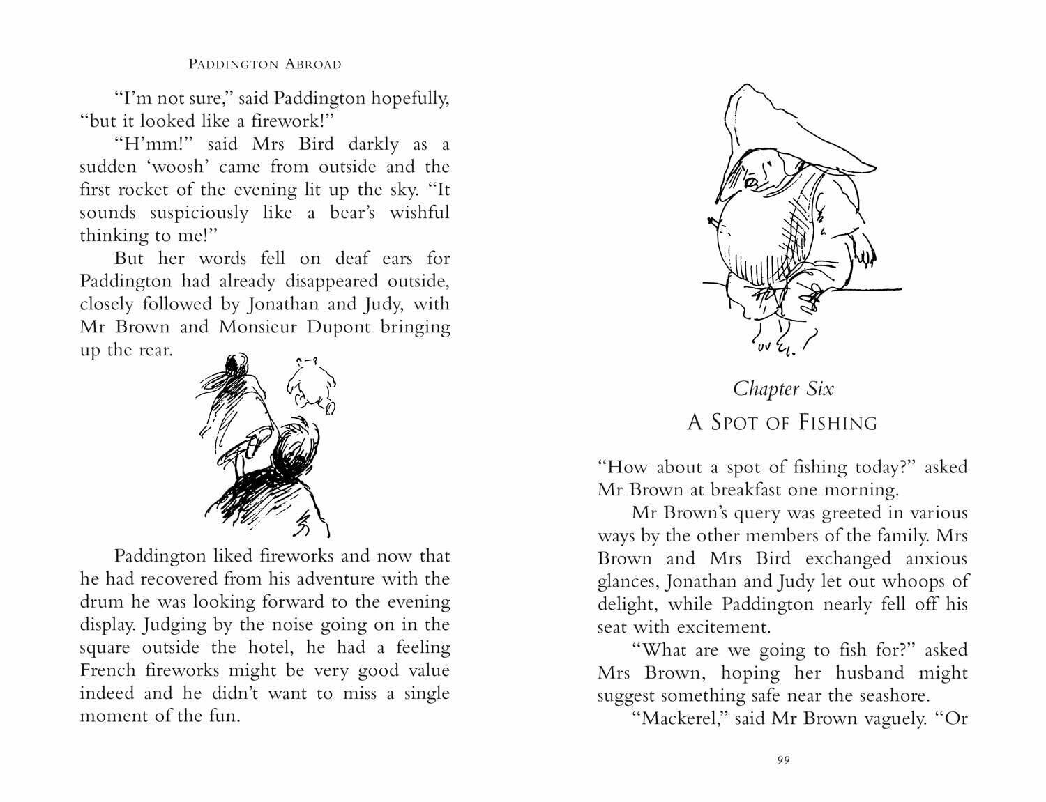 Paddington is in charge of the "EYETINNERY" and, as Mrs Bird mutters darkly, "There's no knowing where we might end up." But Paddington is planning some very good holiday `doings' indeed for the Browns. And he even becomes the only bear ever to ride in the famous Tour de France bicycle race!
