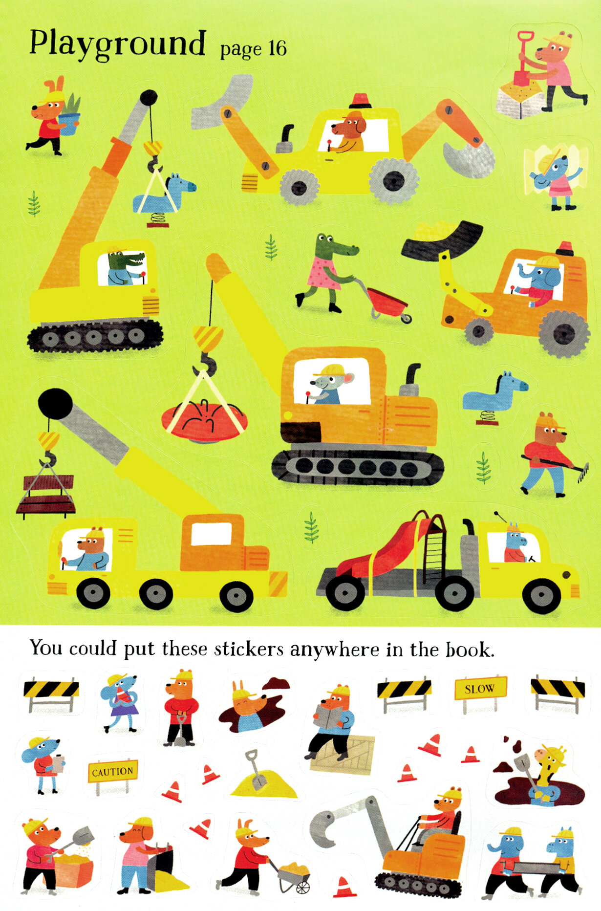 Create a playground, mine a quarry and demolish a building in this entertaining activity book for young children. There are over 200 reusable stickers of diggers, cranes, trucks and workers to add to the building sites, and a fold-out back cover to store stickers when not in use.