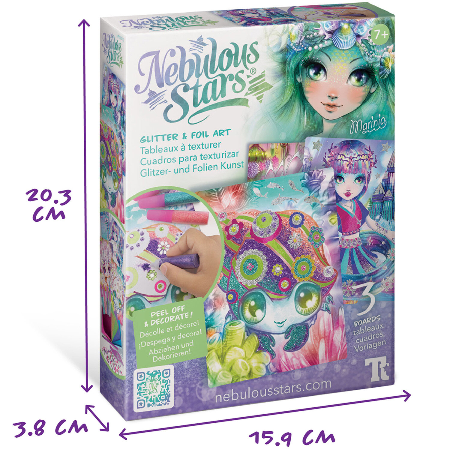 Набор для творчества по созданию 3-х блестящих аппликаций. Декорирование 3-х эскизов на клеевой основе с помощью цветной фольги, геля с блёстками и страз. К набору прилагается подробная инструкция и буклет с историей звёздочки Marinia.Набор предназначен для детей старше 6 лет.Комплектация: 3 картины с клеевой основой, 6 листов фольги, 4 геля с блёстками, разноцветные стразы, инструмент для фольги, кисточка, полная история звёздочки Marinia, инструкция.Размер индивидуальной упаковки: 16 х 3,8 х 20,3 см