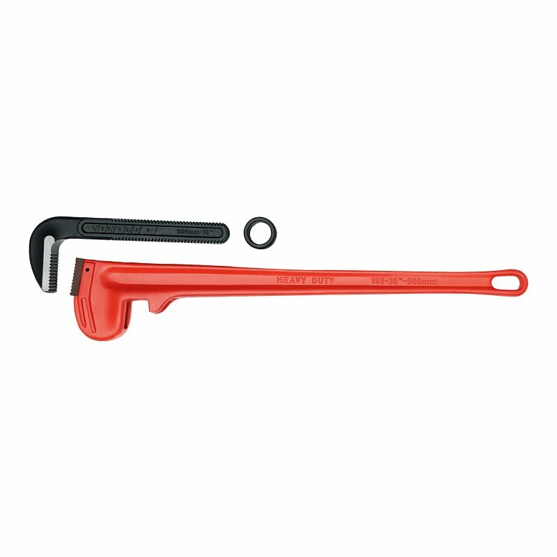 Описание: Прямой трубный ключ для больших нагрузок Heavy Duty (Хэви Дьюти) 36' IzeltasРасчитан для больших нагрузок с высокой эксплуатационной надежностью. Применяется при строительстве трубопроводов, в нефтегазовой отрасли, на промышленных предприятиях. Отличается прочным литым корпусом.Геометрия зубьев (со смещением) обеспечивает максимальный захват и фиксацию трубы.Подвижность верхней щеки увеличивает скорость и удобство работы при захвате трубы.Нанесенная дюймовая шкала верхней щеки показывает размер зева ключа для труб различного диаметра .Регулировочная гайка с накаткой позволяет испозовать ключ одной рукой.Нижняя щека из легированной стали с индукционной закалкойШирокая и удобная рукоятка двутаврового сечения выдерживает максимальные нагрузки при минимальном весе.Отверстия в рукоятке для удобного хранения инструмента в подвешенном состоянии.Характеристики Общая длина, мм 900 Длина, дюйм 36 Размер зева максимальный, мм 140 Максимальный размер резьбы (G), дюйм 5" Угол наклона губок, градусов 90 Вес, г 7600
