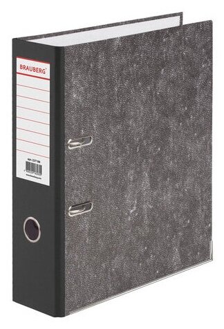 | Прочие особенности и свойства | Папки-регистраторы BRAUBERG изготовлены из высококачественного картона, покрытого цветным пластиком. Служат в 2 раза дольше по сравнению с обычными картонными папками. РЕАЛЬНАЯ ширина корешка - 80 мм. |