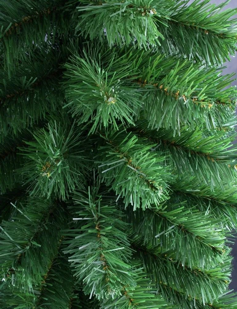 Крона в виде широкого конуса, размах нижних веток 1180 мм, темно-зеленый цвет, хвоя пленка ПВХ, длина хвоинки 45 мм, ветви жестко прикреплены к стволу, отгибаются движением руки, количество веток 501 шт.