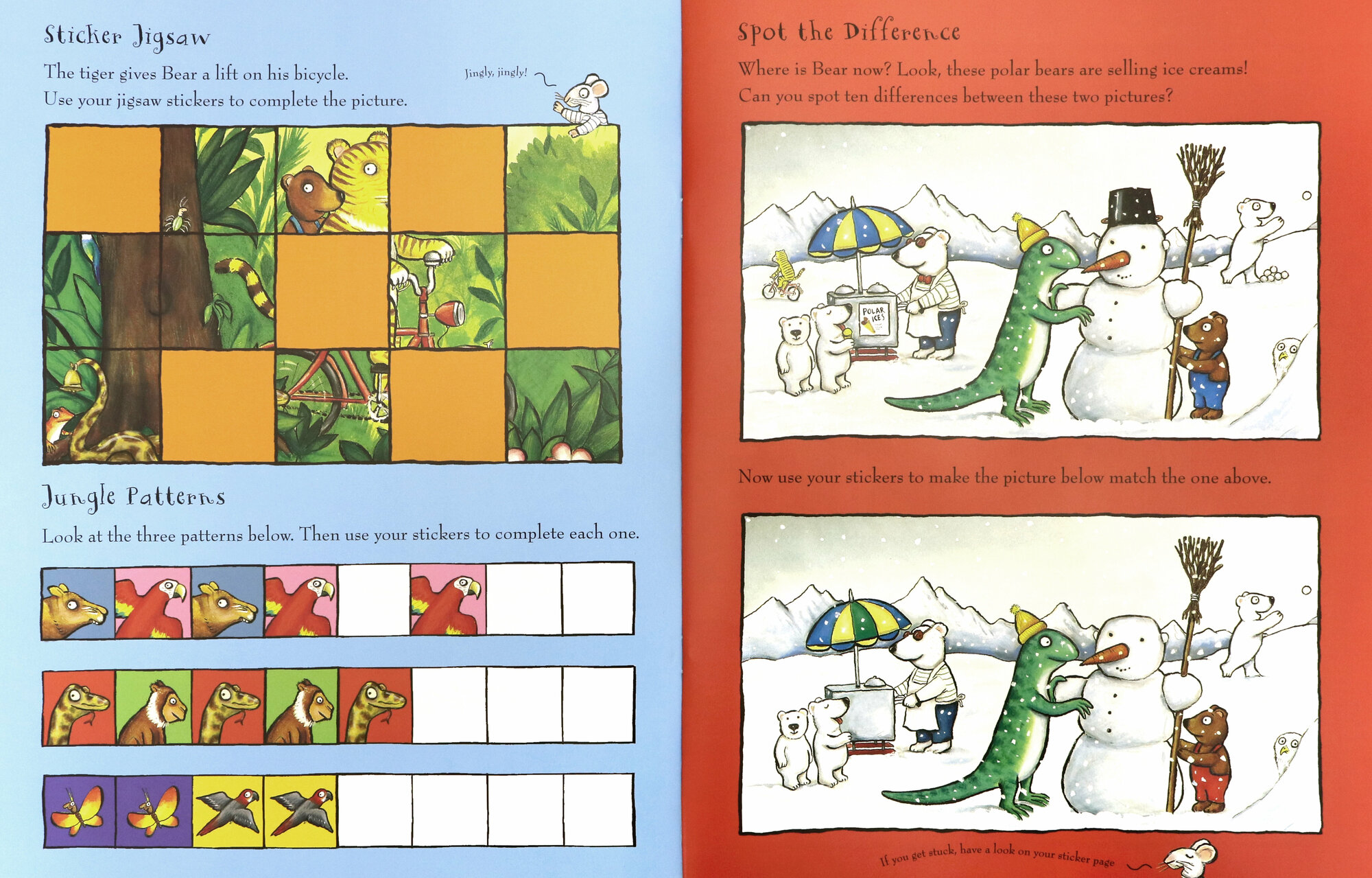 It's bedtime. But where's Bedtime Bear? He's having wacky adventures on his way to joining Tom for bedtime - from riding a bike with a tiger in the jungle to building a snowman with a lizard in a blizzard! Bedtime Bear finally arrives home for bathtime and bed, where Tom is delighted to see him. Follow Bedtime Bear on his adventures in this fun sticker activity book, based on the bestselling lift-the-flap favourite, The Bedtime Bear by Ian Whybrow and Axel Scheffler.