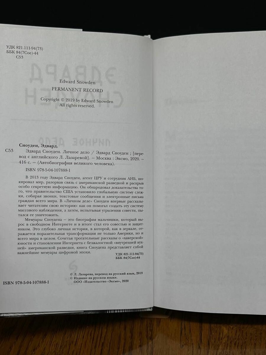 Мировой бестселлер! После того, как правительство США подало иск против бывшего сотрудника ЦРУ и АНБ Эдварда Сноудена за публикацию этих мемуаров, они стали самой продаваемой книгой в мире.