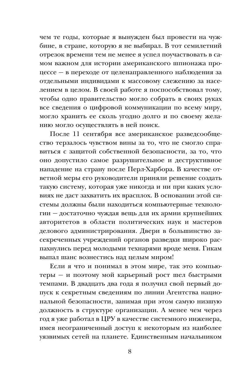 Не могу поверить, что эти мемуары, наконец, выходят. Жду их очень давно. Пока что в нашем распоряжении лишь ознакомительный фрагмент книги, но и его я прочитала взахлеб. Правда, благодаря ему мы можем пока что узнать о начале пути Сноудена, но, надеюсь, основные страницы его биографии – самая вкусная часть книги.
