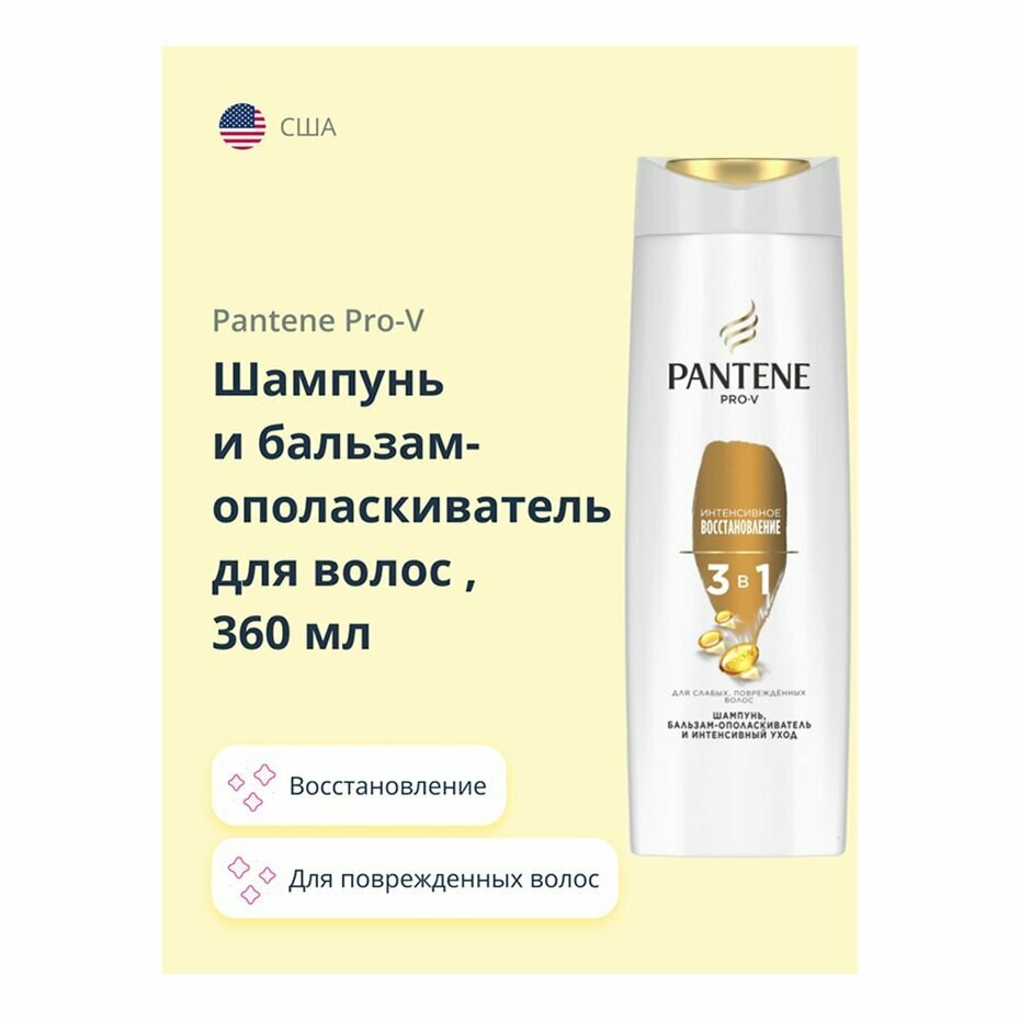 Шампунь и бальзам-ополаскиватель Pantene Pro-V 3 в 1 Интенсивное восстановление 360 мл (81664690)