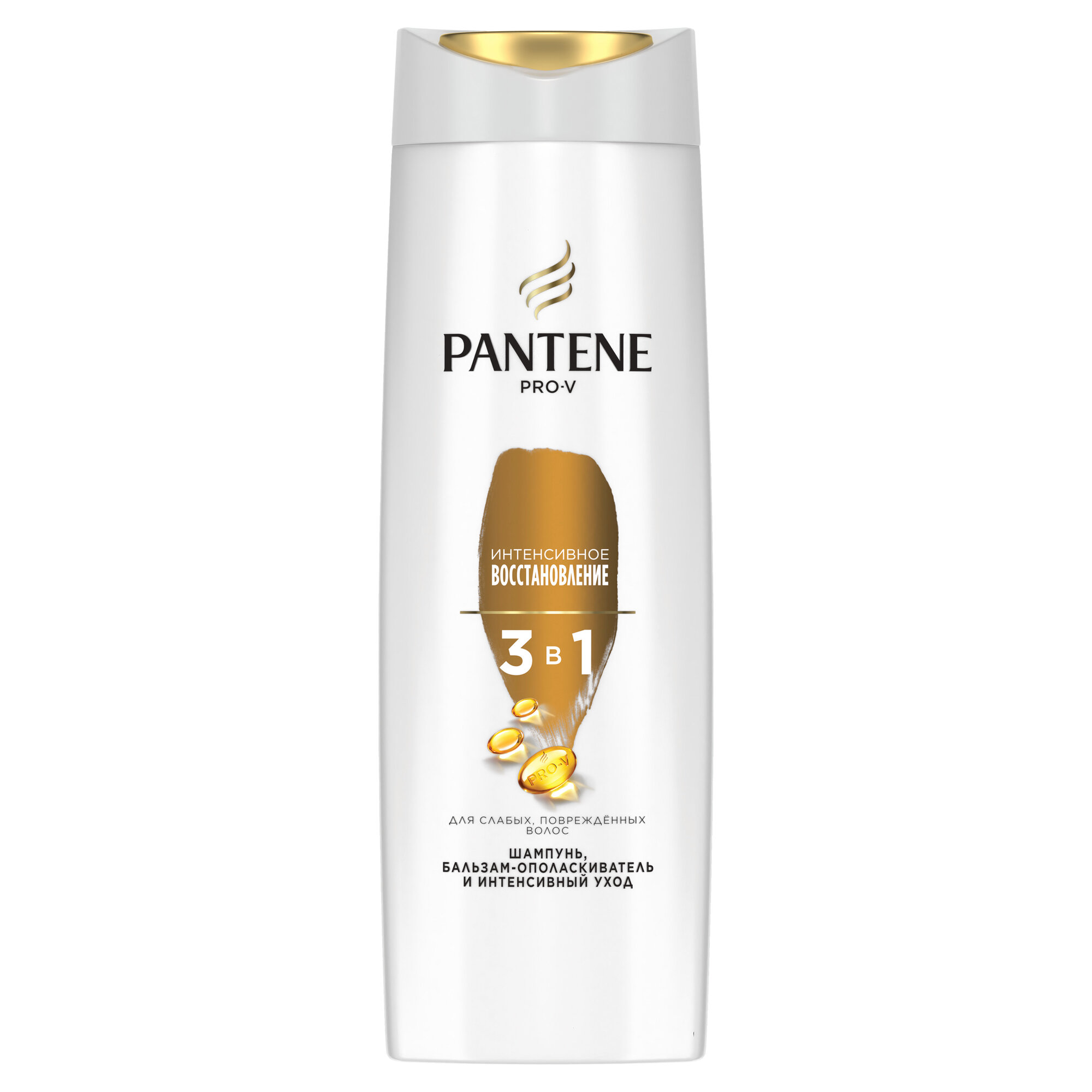 Шампунь + бальзам-ополаскиватель + интенсивный уход Pantene Pro-V "Интенсивное восстановление" 3в1 очищает, облегчает расчесывание и восстанавливает волосы за одно применение. Заряжает волосы активными питательными веществами Pro-V. Мгновенно устраняет признаки повреждения. Помогает избежать повреждения волос во время укладки. Предотвращает появление секущихся кончиков. Мгновенно устраняет признаки повреждения. Для ослабленных, поврежденных волос.
