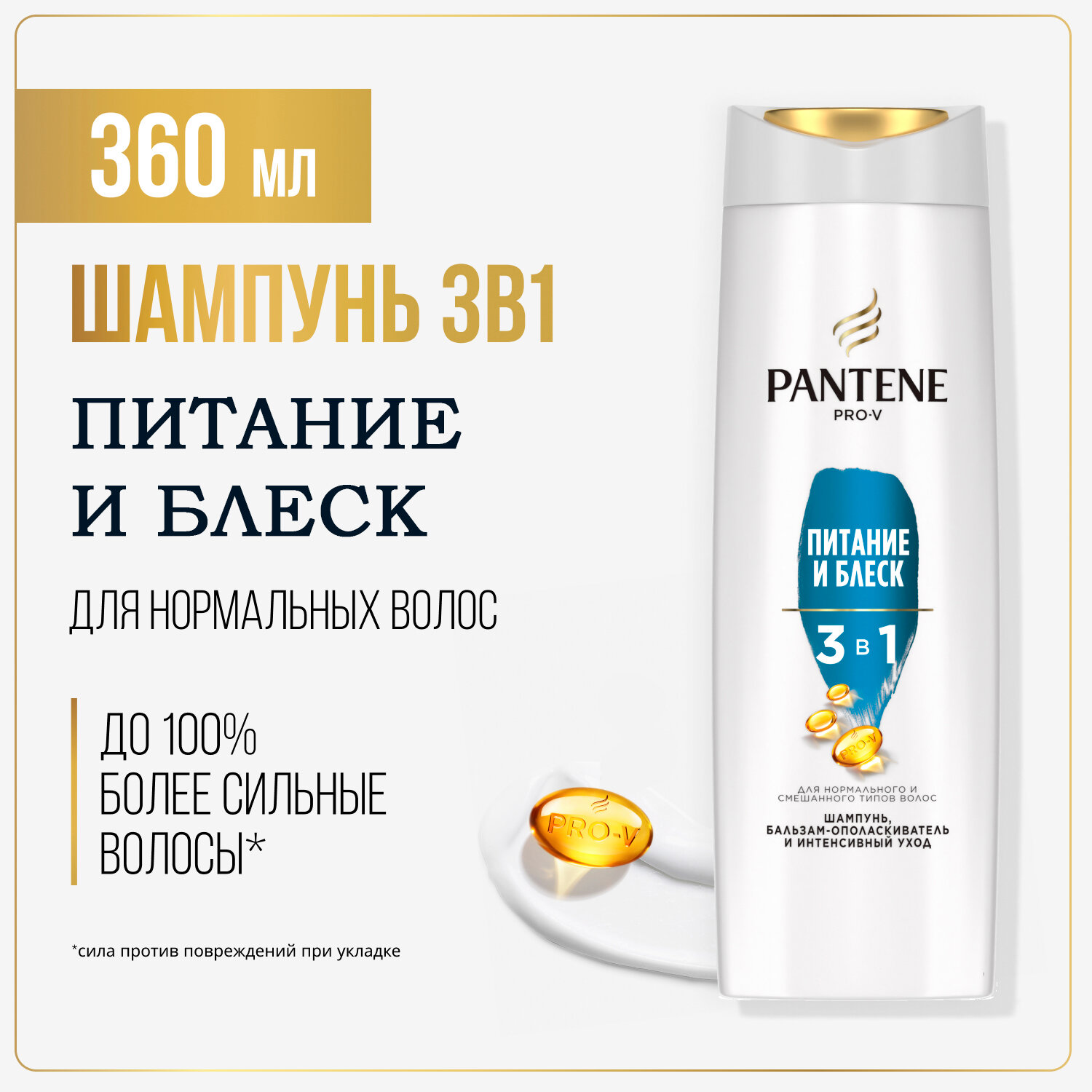 Шампунь, бальзам-ополаскиватель и уходовое средство Pantene Pro-V 3в1 очищает, облегчает расчесывание и восстанавливает волосы за одно применение. Заряжает волосы активными питательными веществами Pro-V, придавая им здоровый вид.