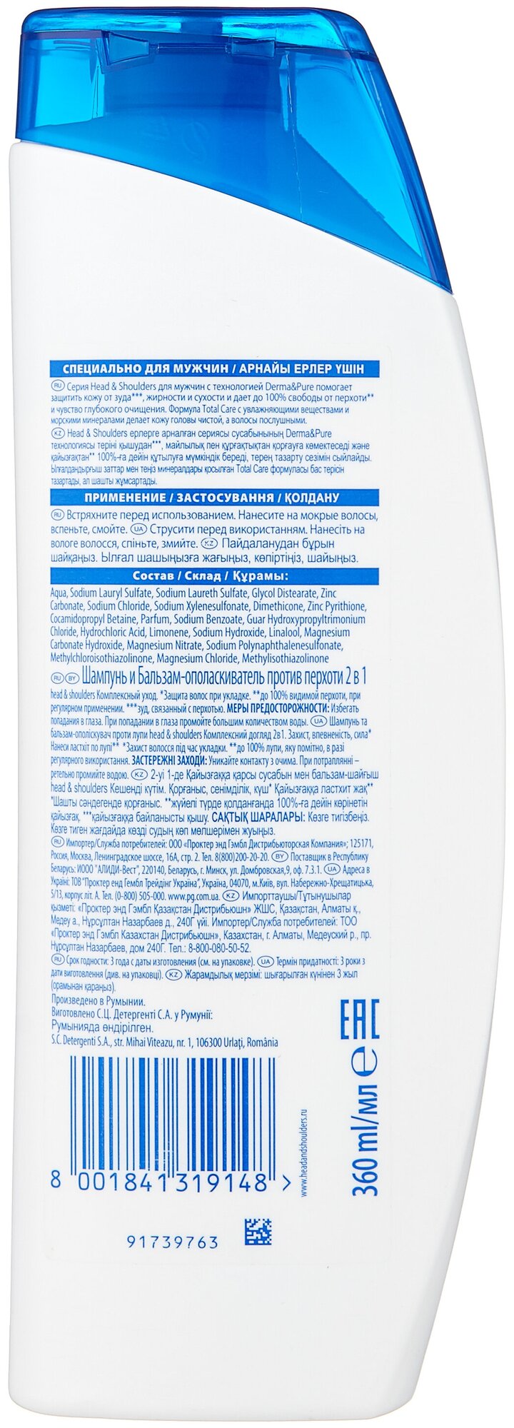 Шампунь и бальзам-ополаскиватель 2 в 1 против перхоти Head&Shoulders Men Ultra Комплексный уход 360 мл (81703855)