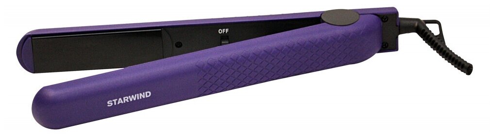 Яркий и стильный выпрямитель STARWIND выполненный в фиолетовом цвете, обязательно привлечет внимание каждой представительницы прекрасного пола. За счет зауженной формы эта модель очень удобно умещается в ладони. Сетевой шнур крепится к корпусу при помощи поворотного механизма. Благодаря чему он не будет спутываться и мешать вашим движениям во время работы. Небольшая масса, компактные габариты и эргономичная форма выпрямителя превратят процесс укладки в необыкновенное удовольствие., Мощность нагревательного элемента – 35 ватт, а максимальная рабочая температура – 200 градусов. Этого хватит, для того чтобы сделать гладкими и сияющими даже самые непослушные волосы. На рабочие поверхности нанесено керамическое покрытие, которое позволит равномерно прогреть пряди и предотвратит их высушивание и повреждение. Удлиненные пластины позволят захватить большее количество волос, а это даст возможность сэкономить время на укладку., Использование качественных составляющих и материалов, а также наличие защиты от перегрева обеспечивает надежность и безопасность работы, а также длительный эксплуатационный срок.