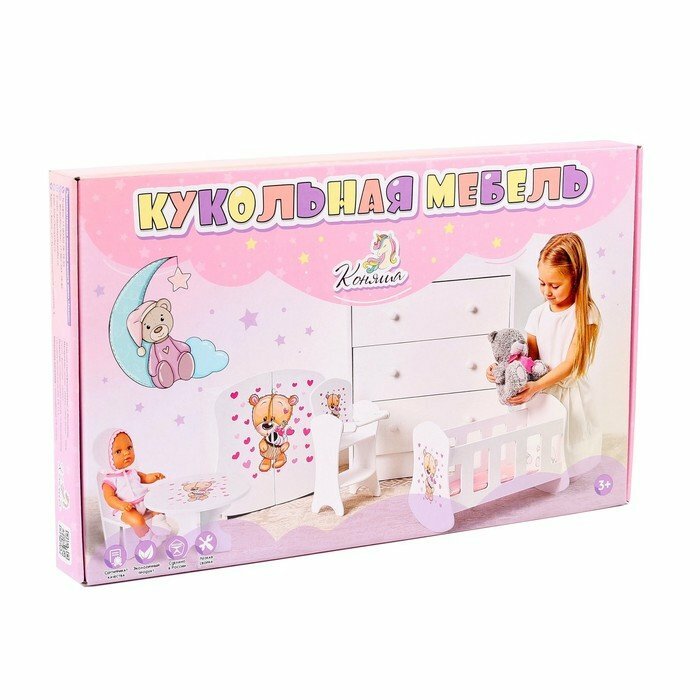 | Комплектация | кроватка, подушка, матрас, одеяло |