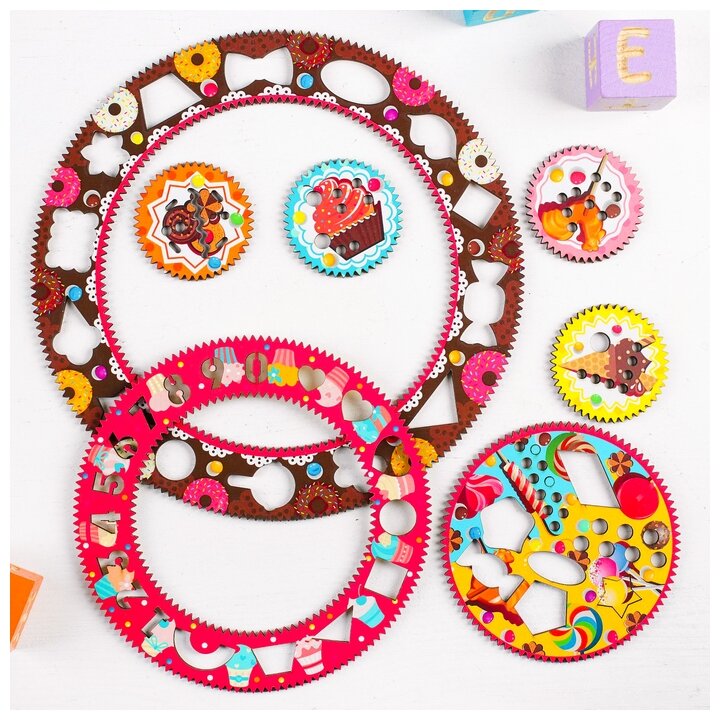 | Состав набора | 2 зубчатых колеса, 5 зубчатых кругов |