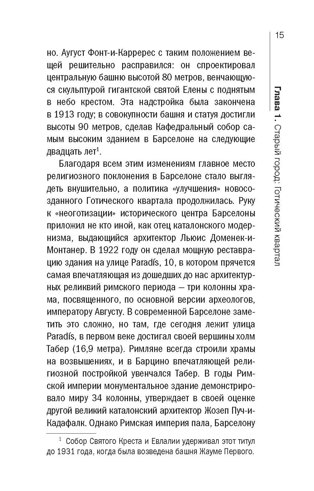 Второй раз я покупаю книгу, в процессе чтения которой автор становится мне несимпатичен. Только из любви к Барсе и великим архитекторам можно читать это занудство. Автор журналист, что не чувствуется (хотя... ведь платят за знаки, надо лить воду). Однообразно, много растянутостей, повторов, фото сконцентрированы в середине книги. Часть - просто ни о чем. 4 фото гигантских спичек - до чего ж интересно, больше нечего поместить в книгу. Мне осталось дочитать треть. Но ничего живенького я от нее уже не жду. Кроме того, обложка книги была сильно поцарапана, как будто ручку на ней расписывали. Часть шедевров архитектуры рассматривала самостоятельно в Интернете.