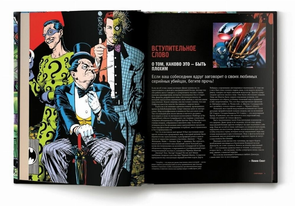Энциклопедия злодеев ДС. Ну как энциклопедия?! После прочтения понял, что я ничего нового не узнал. В книге даётся крохотное количество информации о персонажах, так что как полноценный справочник не годится- уж слишком скудно. Однако, хочу подчеркнуть шикарный дизайн! Элегантные чёрные страницы, в купе с интересными обложками и фрагментами оценит каждый , а страницы с годнейшими рисунками(из комиксов) от признанных художников будут по душе каждому фанату.