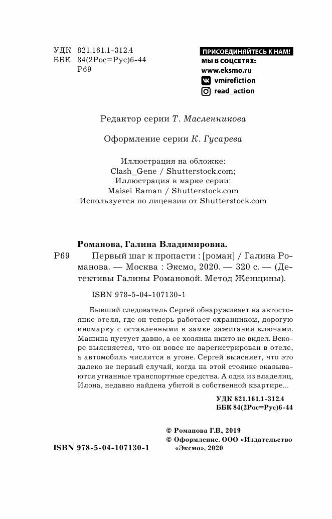 Книга: Первый шаг к пропасти (Галина Романова); Эксмо, Редакция 1, 2020