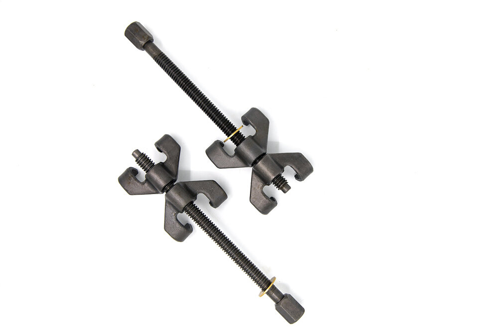 280 мм Привод: 22 мм, 1/2В комплекте 2 шт. Стяжки предназначены для сжатия пружин при установке и демонтаже всех типов пружин. Снабжены коваными двойными крюками с широкими контактными поверхностями , повернутыми таким образом, чтобы обеспечить наилучшее соприкосновение с пружиной. Винт с усиленной трапецеидальной резьбой имеет шестигранный привод под ключ и квадрат под вороток 1/2’’. Входящие в комплект латунные шайбы предназначены для уменьшения силы трения между головкой винта и захватом. Стяжки применяются парами и устанавливаются с двух сторон демонтируемой пружины. Для увеличения срока службы рекомендуется перед использованием наносить небольшое количество жидкой смазки на резьбу. Твёрдость: 38 — 42 HRCФосфатирование