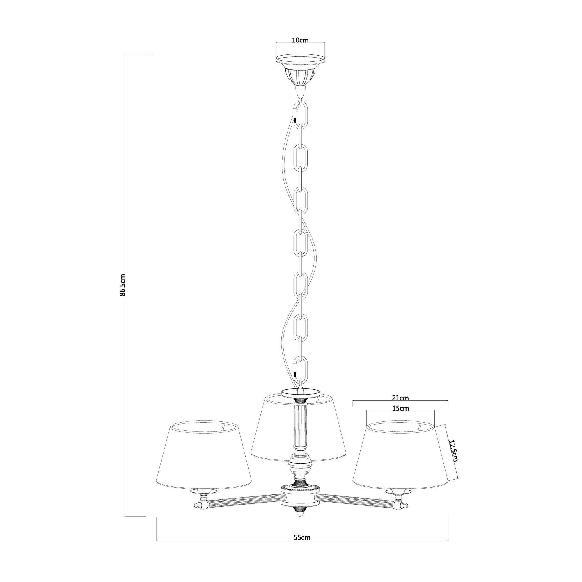 - Конструкция подвесной люстры позволяет регулировать высоту изменением количества звеньев цепи.