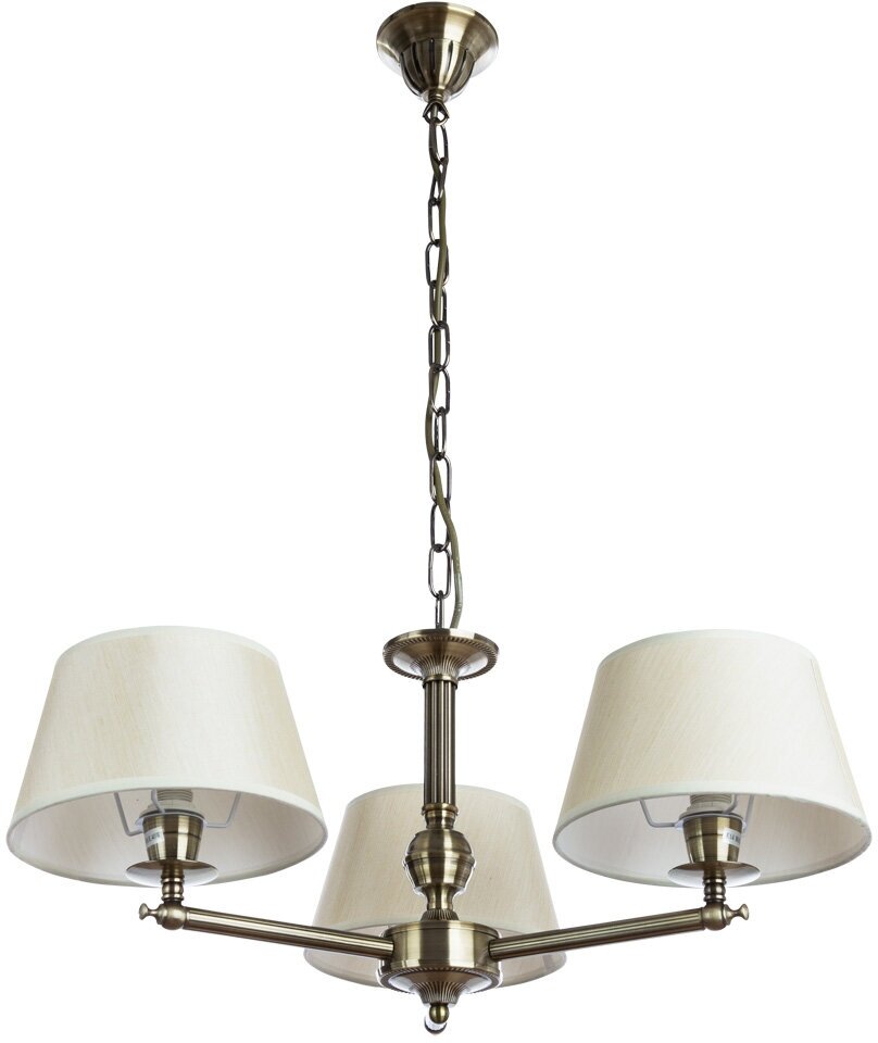 Arte Lamp York - классическая пятирожковая люстра с регулируемой высотой подвешивания. Каркас модели выполнен из металла цвета античная бронза, абажуры - из атласной ткани кремового оттенка.