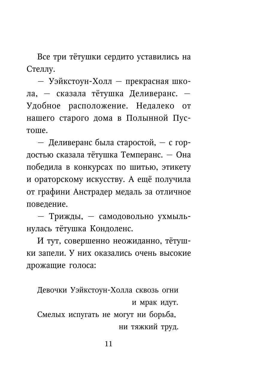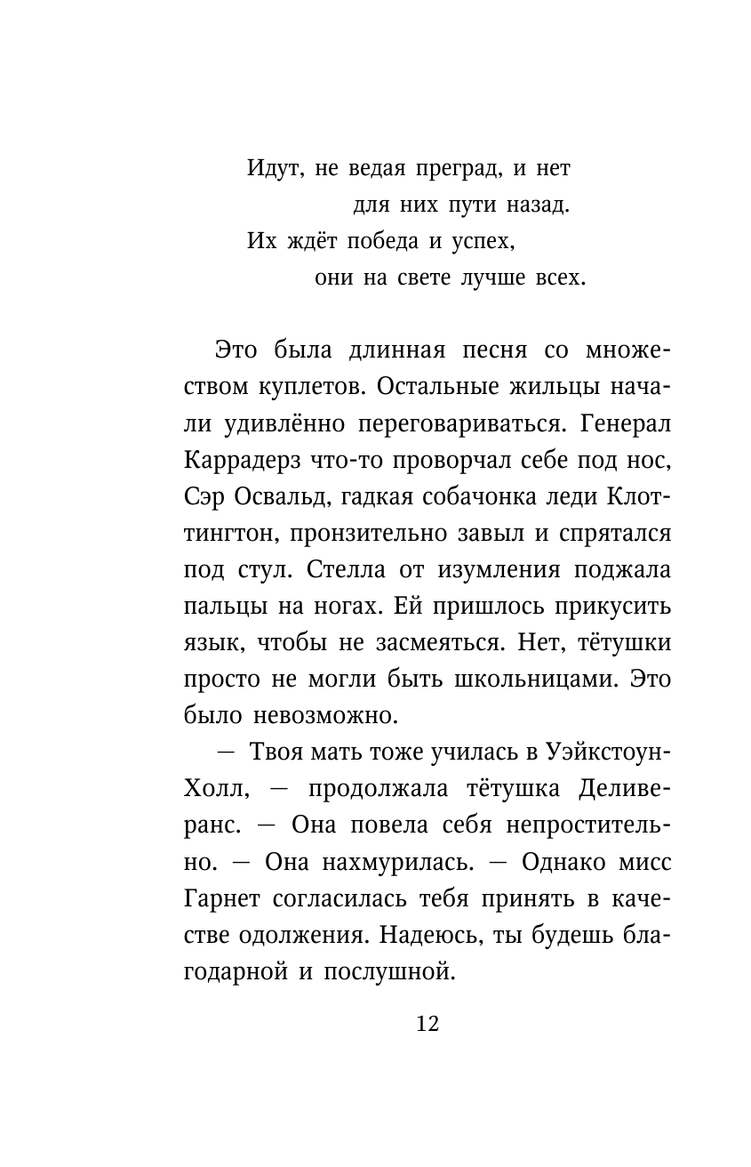Сначала все кажется довольно скучным и типично английским. Стеллу, вынужденную уехать от кузенов, т.к. их отец вернулся и отправился с ними в Саргассово море путешествовать, тетушки отослали от себя для получения образования в частную школу для девочек, которую закончили сами. И здесь читатели знакомятся с английскими школьными традициями и , конечно, вместе со Стеллой и ее подругами поучаствуют в необыкновенных спасательных приключениях.
