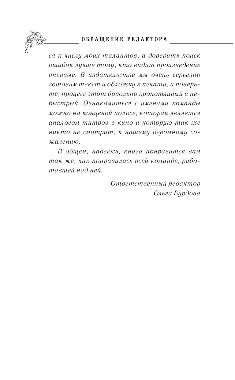 Интересная книга. Сюжет незамысловатый и напоминает книги подобного жанра, но все же умеет зацепить и вовлечь в ткань повествования. Герои привлекательны и лично мне понравились своими характерами. Чем больше читаешь, тем больше «знакомишься» с ними, тем больше начинаешь переживать за них и внимательнее читать книгу. Чудесно, советую.