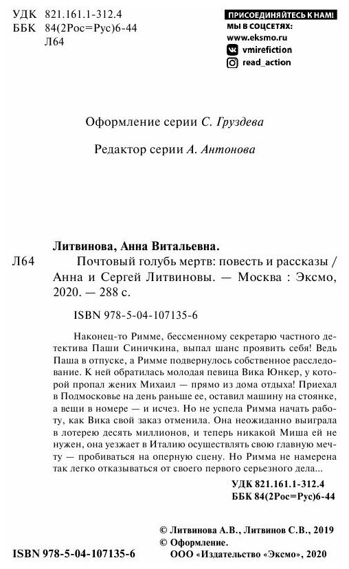 Книга: Почтовый голубь мертв (Литвинова Анна Витальевна, Литвинов Сергей Витальевич, Чернышов Сергей); Эксмо-Пресс, 2020